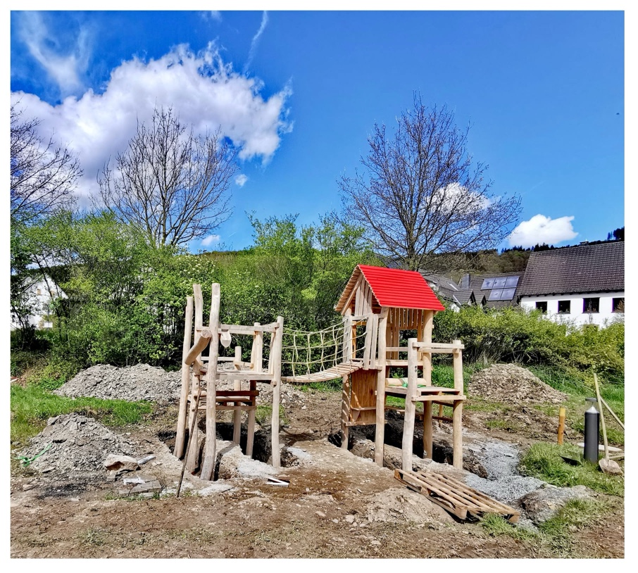Die Arbeiten für den neuen Spielplatz sind bereits seit einigen Tagen wieder in vollem Gange und bereits jetzt lässt sich erahnen, welchen Spielspaß die Kinder ab Sommer haben werden. Seit einigen Tagen lässt sich beobachten, wie die verschiedenen Spielbereiche entstehen. Am heutigen Montag wurde seitens der Gemeinde das Spielgerät aufgestellt. Aber Vorsicht, so verlockend es auch aussieht, dieses wurde noch nicht zum Bespielen freigegeben. Aktuell laufen die Aufbauarbeiten und es wird darum gebeten, die Baustelle "Klettergerüst" noch nicht zu betreten. Eltern haften für Ihre Kinder! Bis zur Endgültigen Freigabe samt Eröffnung müssen sich die Kinder noch gedulden. (Bild copyright Björn Kessler)