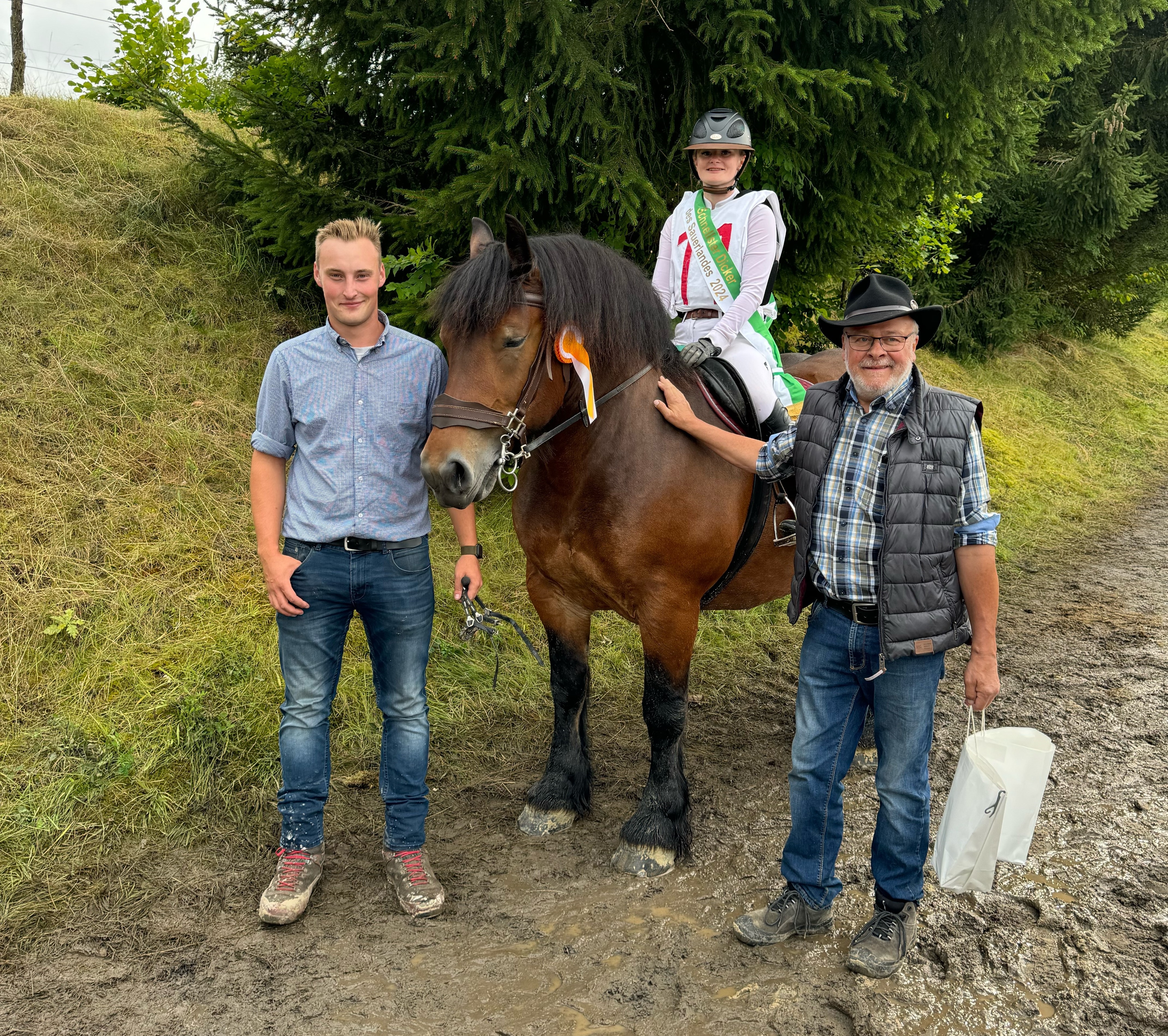 Max, im Besitz von Peter Schauerte, wurde von der Reiterin Victoria Voß aus Schmallenberg erfolgreich durch das Rennen geführt. Mit auf dem Bild unser aktueller Jungschützenkönig David Beulke, welcher sich in seiner Freizeit mit um die Pferde von Peter Schauerte kümmert.