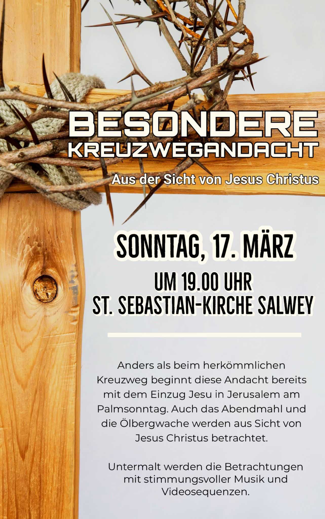 Anders als beim herkömmlichen Kreuzweg beginnt diese Andacht bereits mit dem Einzug Jesu in Jerusalem am Palmsonntag.