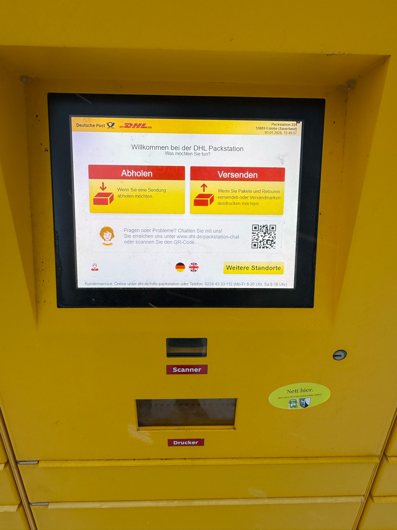 Ganz ohne Angebot bleibt Eslohe jedoch nicht. Am Netto-Markt steht die DHL-Packstation 224 – sie „grinst einen schon von der Straße aus an“. Hier ist nicht nur der Empfang von Paketen möglich, sondern auch der Versand sowie die Rückgabe von Retouren. Für viele Online-Bestellungen ist das eine praktische und rund um die Uhr verfügbare Lösung.
