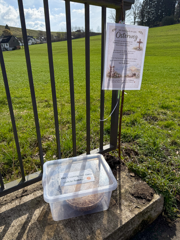 Der Stationenweg war in der Zeit vor Ostern begehbar und bot eine wunderbare Gelegenheit, Bewegung in der Natur mit Momenten der Besinnung zu verbinden. Viele nutzten die Strecke für einen Spaziergang oder eine Fahrradtour und ließen sich dabei von den Ideen und Impulsen inspirieren.